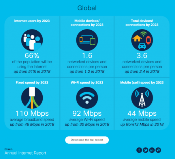 시스코 VNI 모바일 트래픽 보고서의 결과를 요약해보겠습니다. (2020년 자료)