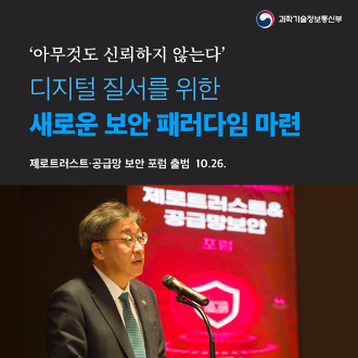 이러한 전세계적인 흐름 가운데 2022년 10월 과기부가 디지털 질서를 위한 새로운 보안 패러다임 마련을 위해 '제로트러스트・공급망 보안 포럼'을 출범하였습니다. 올해 삼성전자와 LG전자 등 국내 대기업도 신흥해커 조직 '랩서스'로부터 공격을 받는 등 우리나라도 공급망 공격에서 더이상 안전하지 않습니다.
